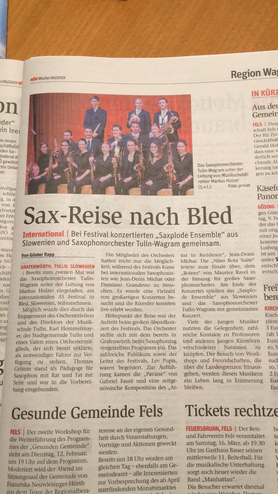 Bereits zum zweiten Mal war das Saxophonorchester Tulln-Wagram unter der Leitung von Markus Holzer eingeladen, am internationalen AS Festival in Bled, Slowenien, teilzunehmen.