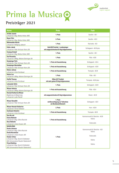 Prima la Musica - ein Preisregen für unsere jungen Talente!