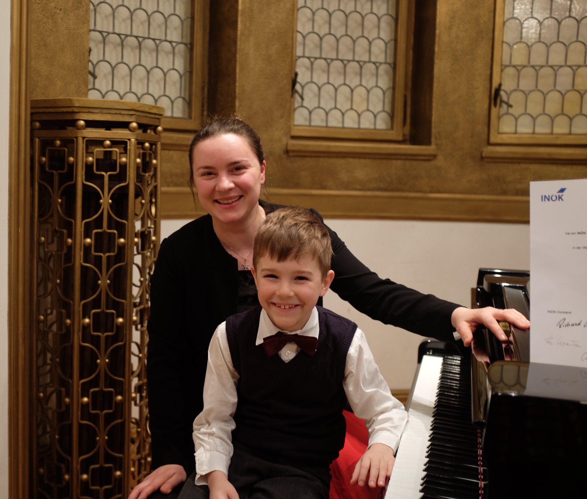 Seine Klavierpädagogin, Adriana Paler-Nicolescu ist stolz auf die ausgezeichnete Leistung.