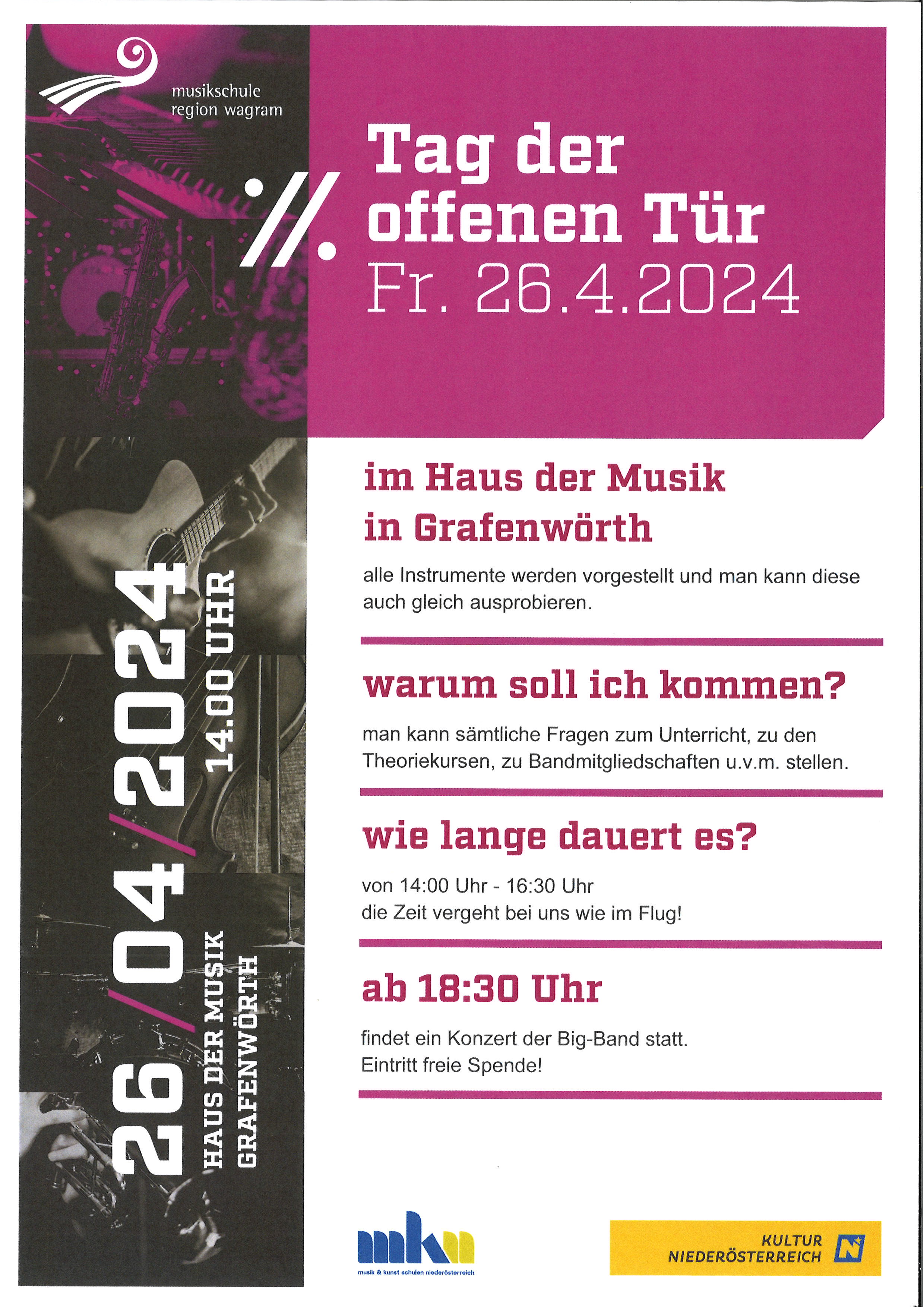 Herzliche Einladung zum Tag der offenen Tür der Musikschule Region Wagram.