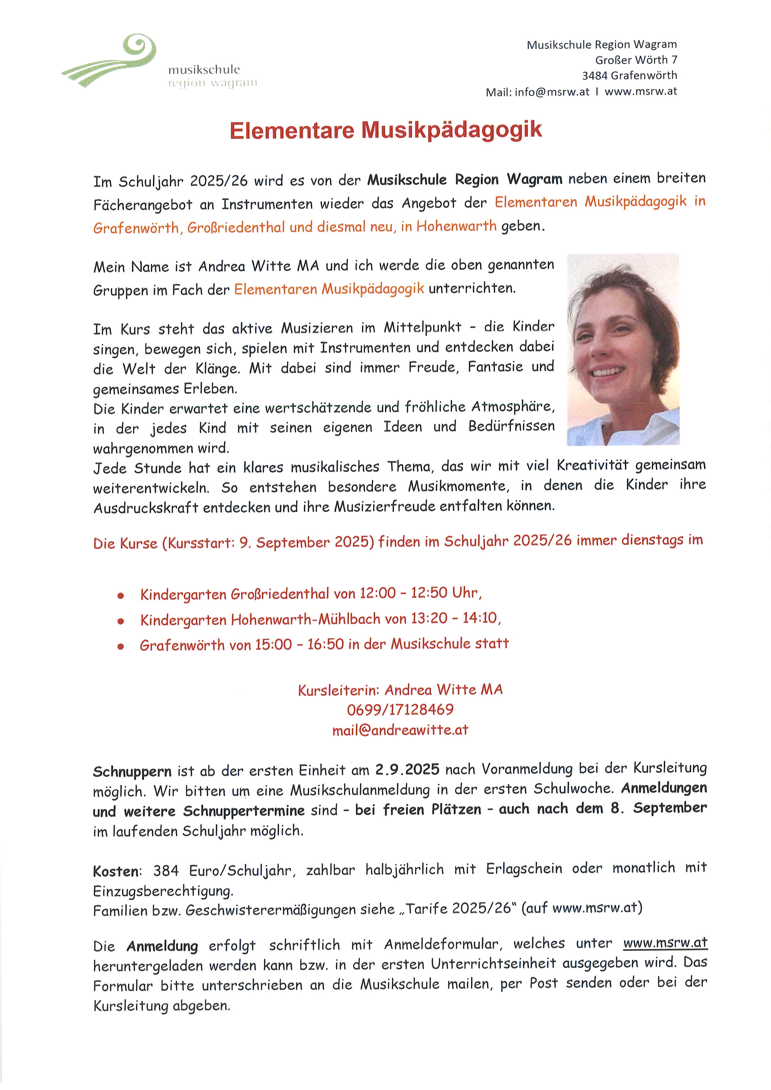 In den Standorten Fels am Wagram, Grafenwörth, Großriedenthal, Hohenwarth-Mühlbach und Kirchberg am Wagram.